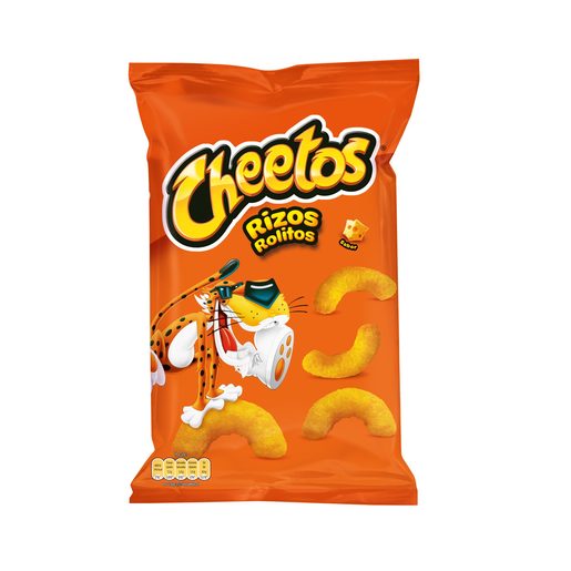 Sémola de maíz (76%), aceite de maíz, aroma a queso [suero de $leche$ en polvo, azúcar, sal, potenciadores del sabor (glutamato monosódico, guanilato e inosinato disódicos), preparaciones y sustancias aromatizantes (contienen $leche$), cloruro potásico, colorante (extracto de pimentón)]. Puede contener trigo y soja.