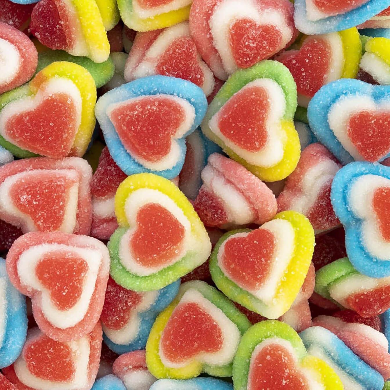 Golosina de corazón de triple altura con un dulce sabor a fresa-nata y una deliciosa cobertura de azúcar. Pieza con un diseño único y original de Vidal Golosinas. Perfecto para endulzar cualquier momento.
