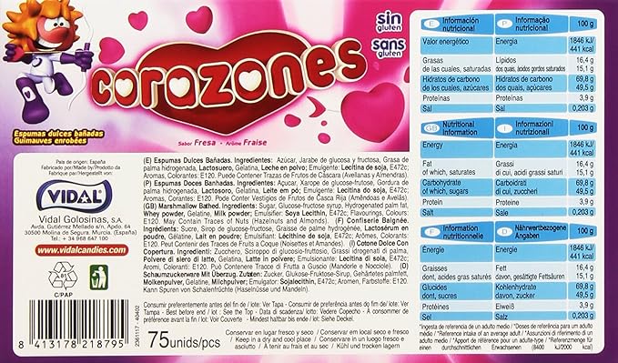 Dulces nubes en forma de corazón con una especial cobertura crujiente sabor fresa combinada con un relleno esponjoso. Su textura y sabor harán que disfrutes de esta chuche una y otra vez.
