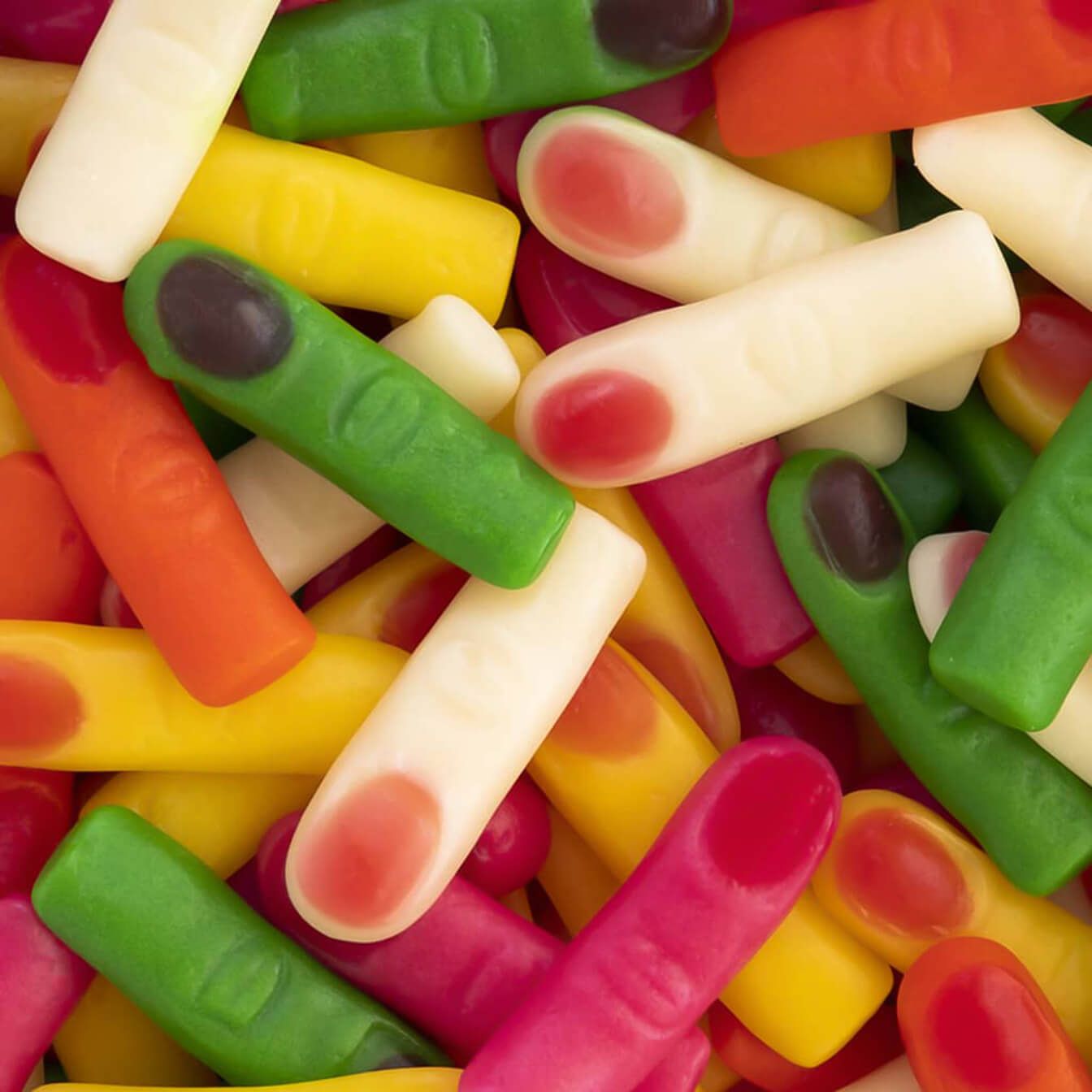 Chuchería en forma de dedos con un increíble sabor a frambuesa y una textura blandita y brillante. ¡Están para chuparse los dedos! Esta original creación de Vidal Golosinas es todo un clásico y hará que te sea imposible no disfrutar de ellos en cualquier momento. Perfectas también para fiestas temáticas y fiestas de Halloween.