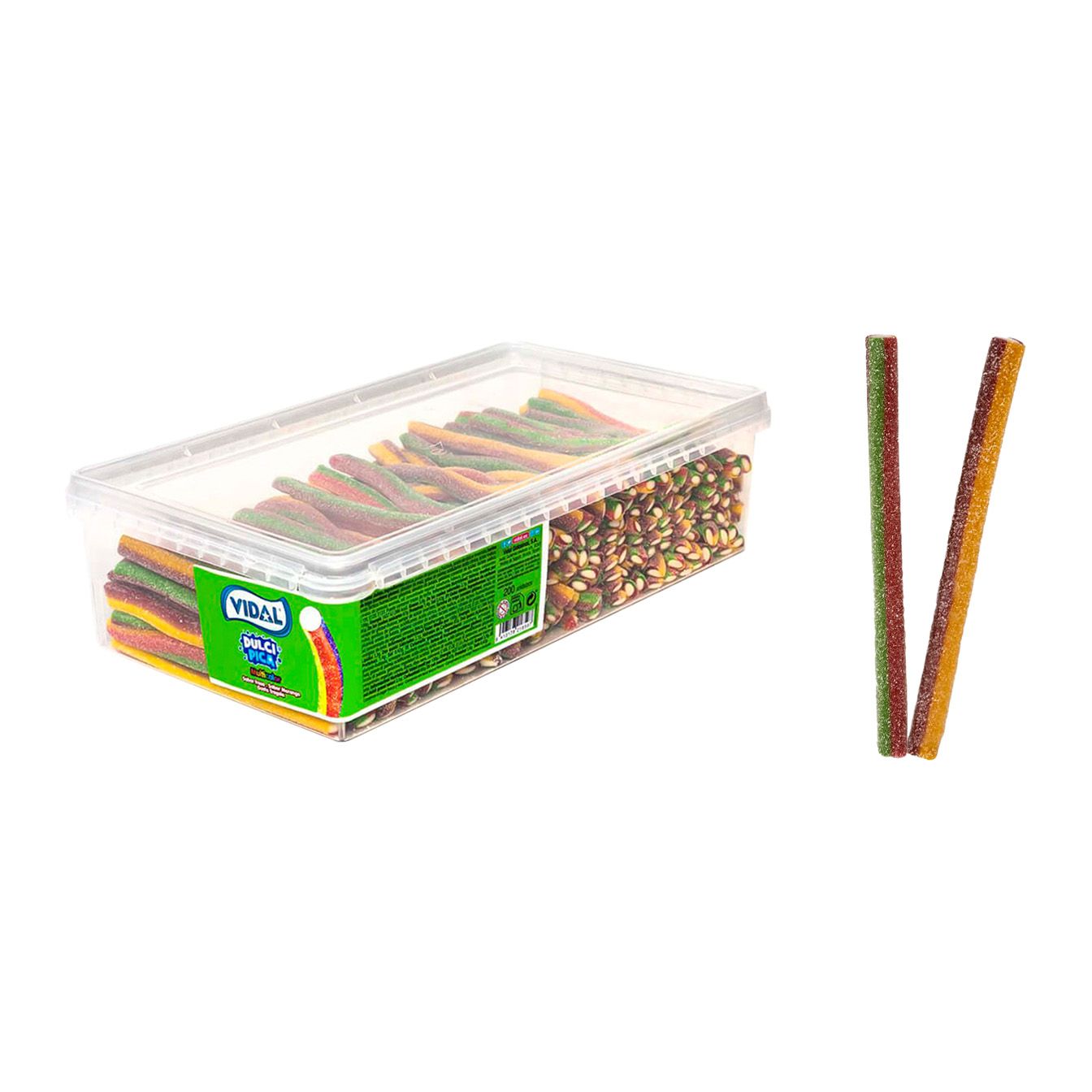 Delicioso regaliz alargado de sabor fresa con un delicioso relleno, cobertura pica y divertidos colores. Esta golosina original de Vidal Golosinas no te defraudará y será todo un acierto en cualquiera de tus eventos, ya que le gustará a todos tus invitados.
