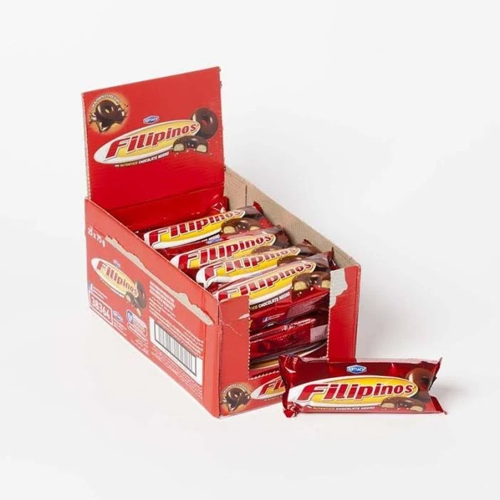 Filipinos bañados en chocolate negro paquete 128 gr.