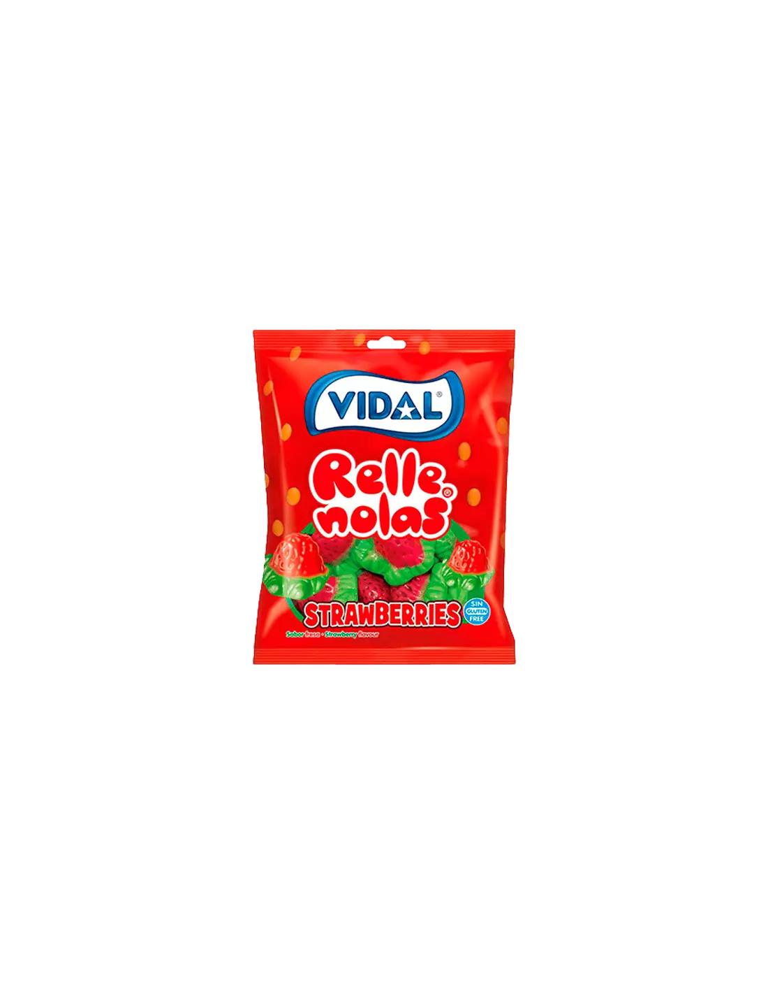 Gominolas en forma de fresas de la marca Rellenolas. Compuestas por una inconfundible doble textura, una capa exterior blandita y suave junto con un interior de gelatina, de un intenso sabor a fresa. Las fresas rellenas son una creación original de Vidal Golosinas y se convertirán en uno de tus favoritos.