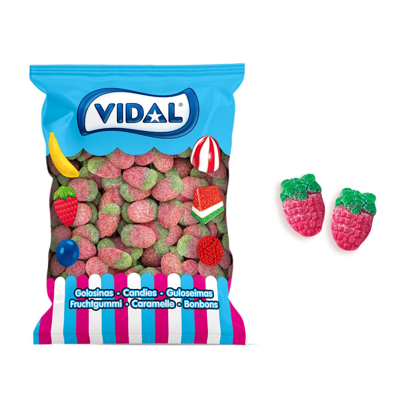Las auténticas chuches en forma de fresa con un intenso sabor inconfundible por su aroma Su textura blandita y cobertura pica, harán que disfrutes del sabor original a fresa. Esta golosina es original de Vidal, por lo que si eres amantes de las fresas silvestres, la cobertura pica te hará disfrutar del sabor de siempre con un extra de rock&roll. Chuche original de Vidal Golosinas