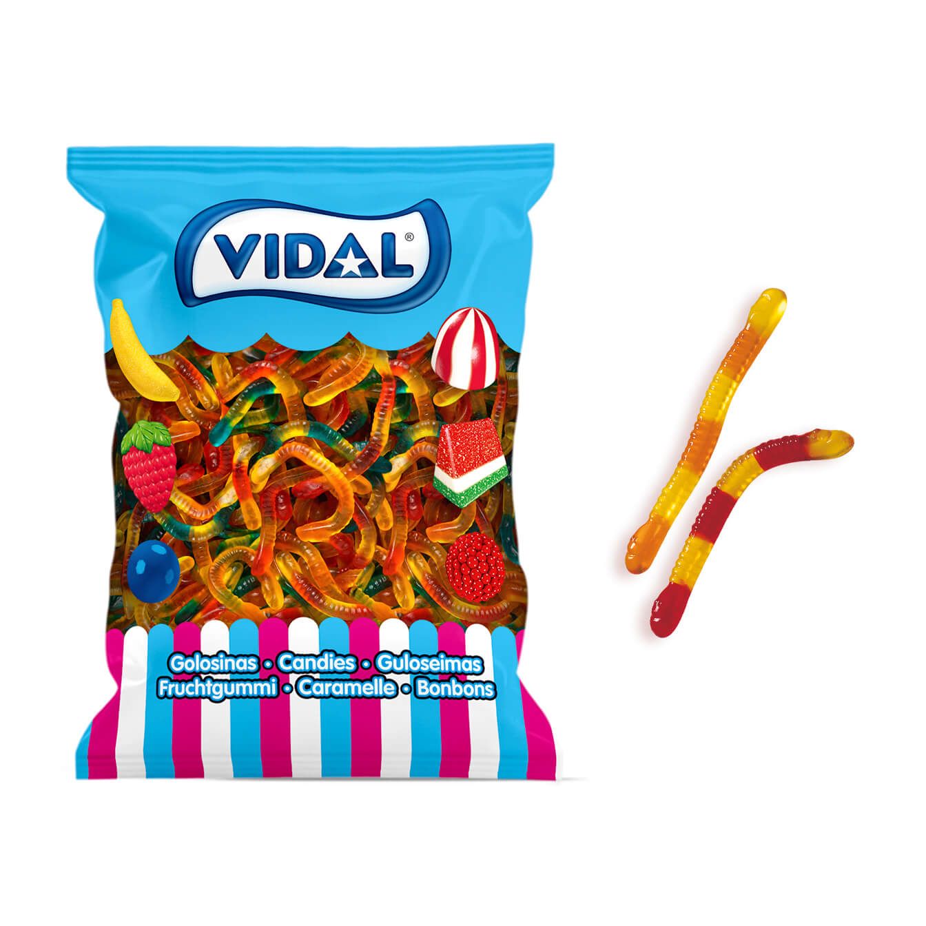 Golosina en forma de originales gusanos bicéfalos con intenso sabor a fresa y una suave textura que te dejará boquiabierto. Esta original chuche creada por Vidal Golosinas será la protagonista en tus fiestas de Halloween y otras fiestas temáticas terroríficas.