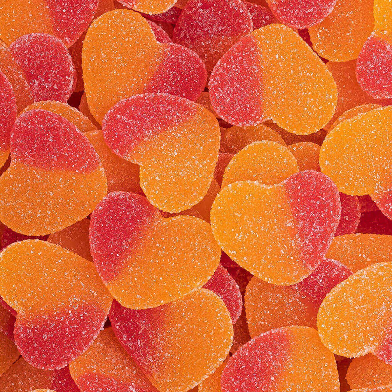 Chuches con forma de corazón bicolor con un dulce sabor a melocotón y una fina cobertura de azúcar. Pieza original de Vidal Golosinas y ideal para tus mesas dulces. Un clásico que no dejará indiferente a nadie.