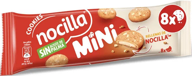Nocilla Mini Cookies Blancas, galletas crujientes con gotas de confitería de cacao y un cremoso relleno