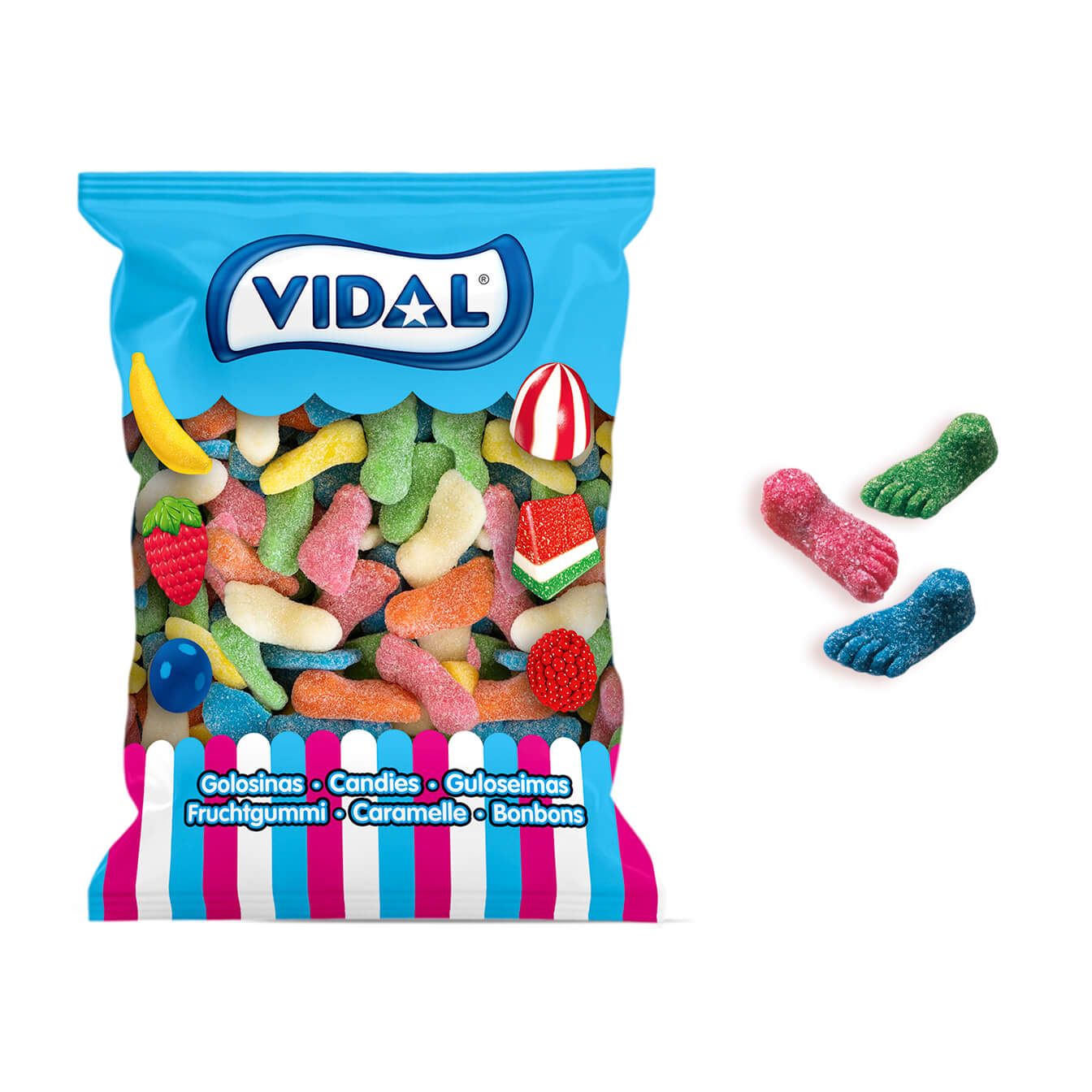 Divertida chuchería en forma de pies humanos con un sabor intenso a fresa ácida. Terrorífica creación de Vidal Golosinas perfecta para fiestas temáticas de miedo y en Halloween.