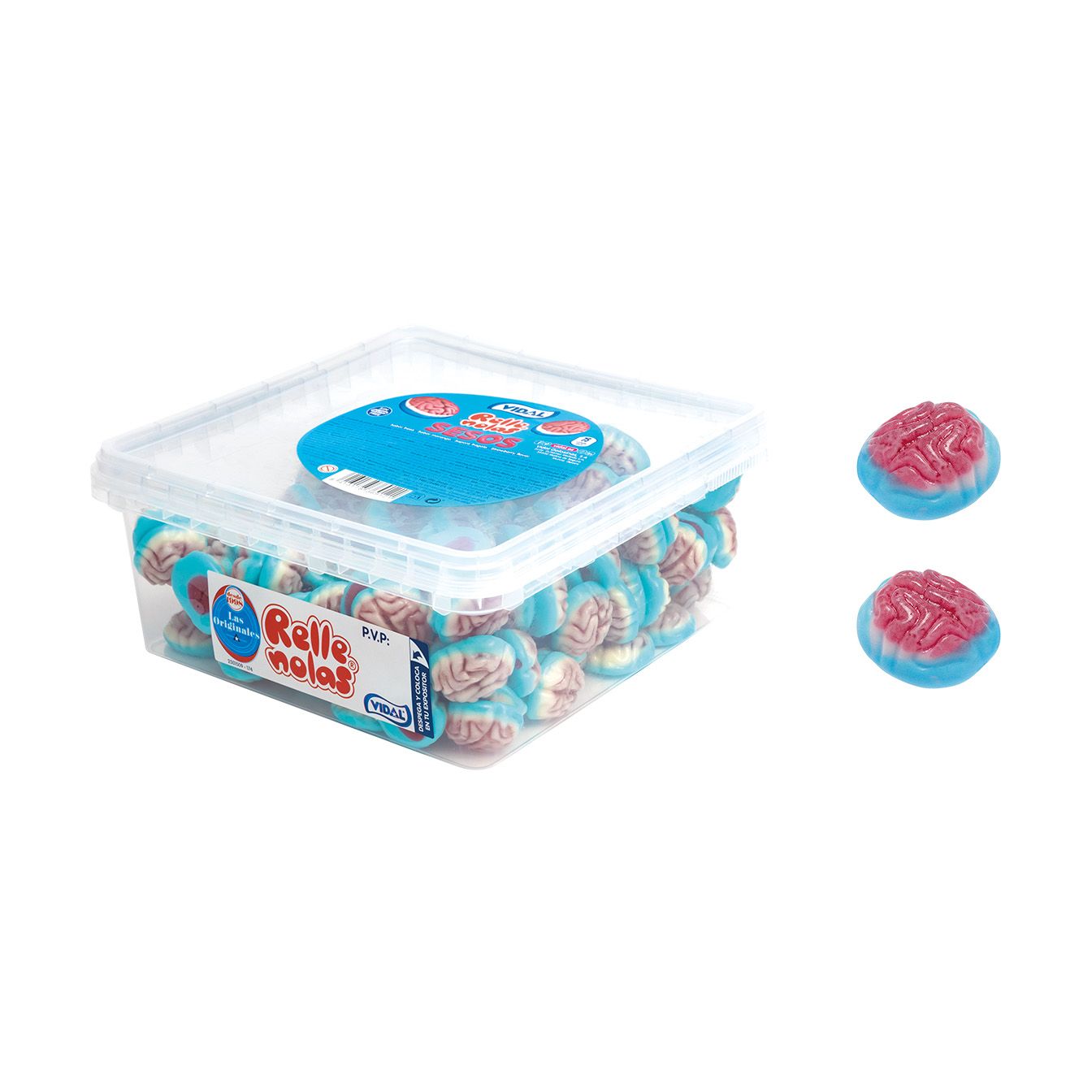 Originales chuches creadas por Vidal Golosinas en forma de sesos rellenos con un intenso sabor a fresa y una textura de gelatina inigualable. Esta original chuche será la protagonista en tus fiestas de Halloween e incluso podrás disfrutarla en cualquier momento que te apetezca probar una chuche original o diferente.