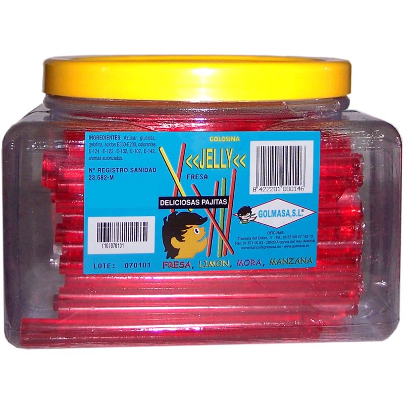 Gelatina, azúcar, agua, jarabe glucosa-fructosa, acidulante E330, aroma autorizado, colorante rojo E124, conservante E200 y antiespumante.